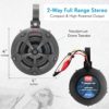 Pyle Model : PLUTV43BTA4’’ Off-Road PowerSport Marine Speakers4’’ Waterproof Rated Off-Road Bluetooth Speakers – Amplified Vehicle Speaker System for ATV, UTV, 4×4, Jeep (800 Watt)Features:Pro Audio PowerSport SpeakersAmplified (Active + Passive) Speaker SystemBluetooth Wireless Music Streaming AbiltiyBridged Sound System: (2) x 4.0” Woofers + (2) x 0.5” TweetersMarine Grade Waterproof Rated ConstructionWeatherproof & Water-Resistant Housing2-Way Full Range Stereo Sound ReproductionBuilt-in Digital Sound Processing AmplifierIntegrated Speaker Power & Wiring HarnessCompact Size & High-Powered OutputImpressive Bass ResponseAux (3.5mm) Input JackConnect & Stream Audio from External DevicesSleek Design, Machine Molded Speaker Cabinet HousingRugged, Universal Mount Bracket Design for Roll-Bar / Roll-CageUsed for Off-Road Outdoor Vehicles: ATV, UTV, 4×4, Jeeps, Marine Watercraft