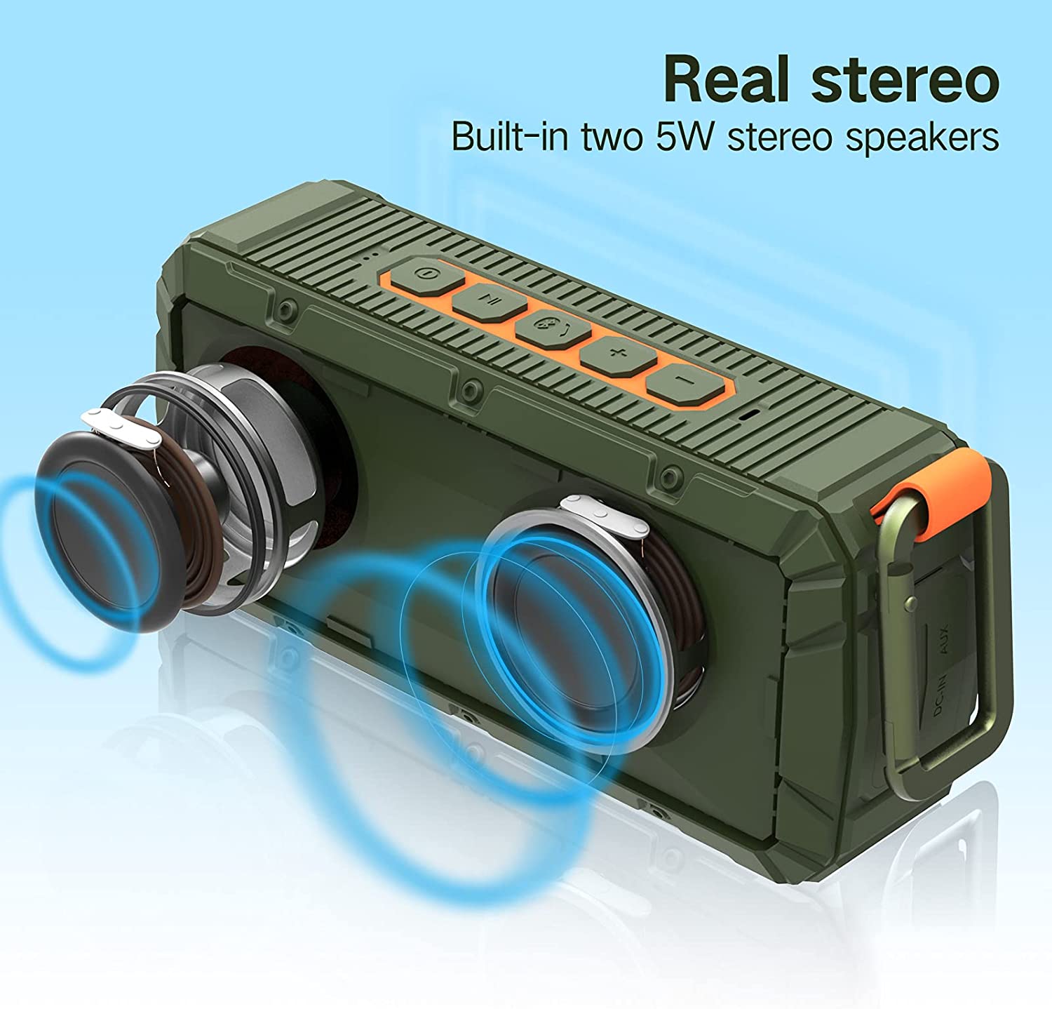 6. A I often stick it on the refrigerator when I cook, or on the bike or grill when I'm outdoors. I think the sound is enough. There are two 5W speakers inside.